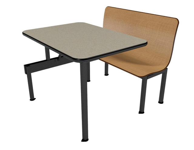Booth sells complete with table top, steel frame and two laminated plastic booth seats. Decorative high pressure laminate finish for back of seat back is standard. Choose from a number of table edge profiles and laminate finishes.
