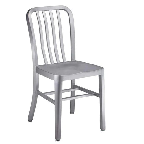 Classic, hard to find aluminum chair styles for restaurants, cafeterias, coffee shops, delis, taverns, night clubs, bars and institutions. Our clean brushed aluminum chairs are available with aluminum, upholstered and wood veneer chair seats. Light weight aluminum frames are heavy duty, all welded construction. Commercial quality, durable construction.