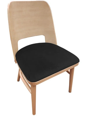 Budget Bentwood Backrest Dining Chairs are available with a natural clear wood finish & black vinyl upholstered seat.