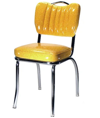 Handle Back Kitchen Style Diner Chairs. The Handle Back diner chair is reminiscent of classic 1950's and 1960's kitchen chairs. Available as Plain Back Kitchen Chairs, Channel Back Kitchen Chairs, Two Tone Channel Back Kitchen Chairs. Chrome Diner chairs feature heavy duty 14 gauge tubular steel construction.