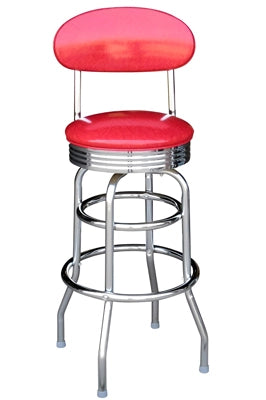 P982 Retro Chrome Rim Bar Stool with Upholstered Backrest
