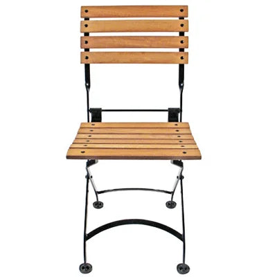 French Bistro Folding Side Chair Teak Back and Seat Slats Have Bolt Through Construction