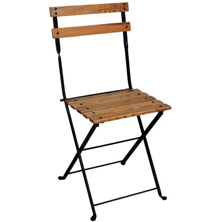 Durable, European made steel and chestnut French bistro style folding chairs are faithful reproductions of the 19th Century original French garden chair design with modern improvements. French garden folding chairs are attractive enough to use inside for permanent dining room installations. Durable for use outside with drawn steel frames treated for rust resistance and powder coated.
