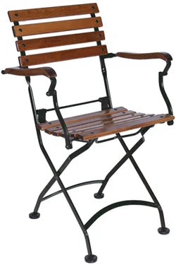 P505T French Bistro Folding Arm Chair in Natural Teak