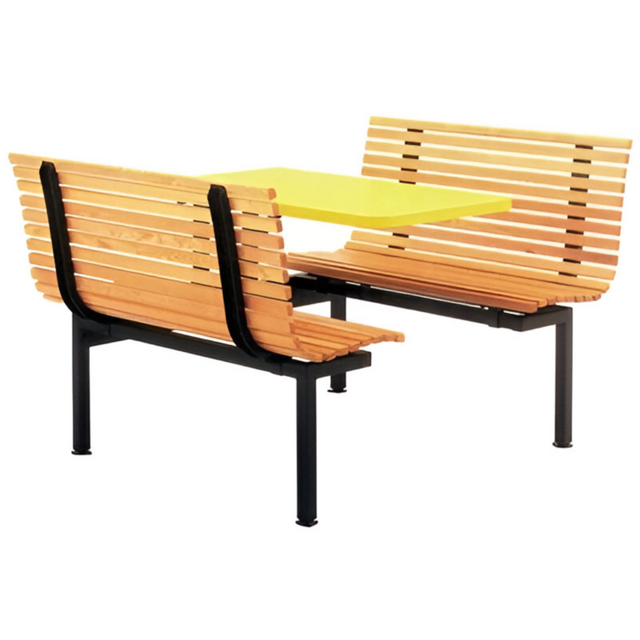 Premium oak hardwood seats restaurant booths for fast food dining room design flexibility and durability. Slat Seat restaurant booth seating combines the warmth and durability of natural wood supported by heavy duty steel framework.